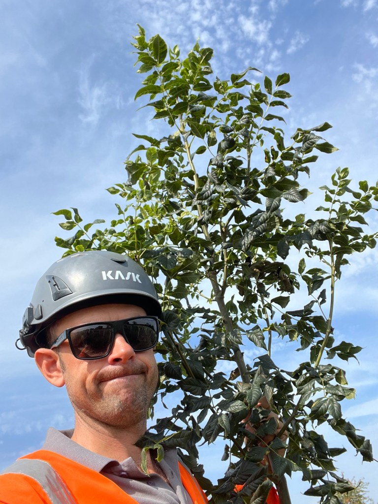 One of our Goat Willows on HS2 almost exploding from the tube. The tall plastic guards have been a huge success this year, protecting newly planted trees from the heat.