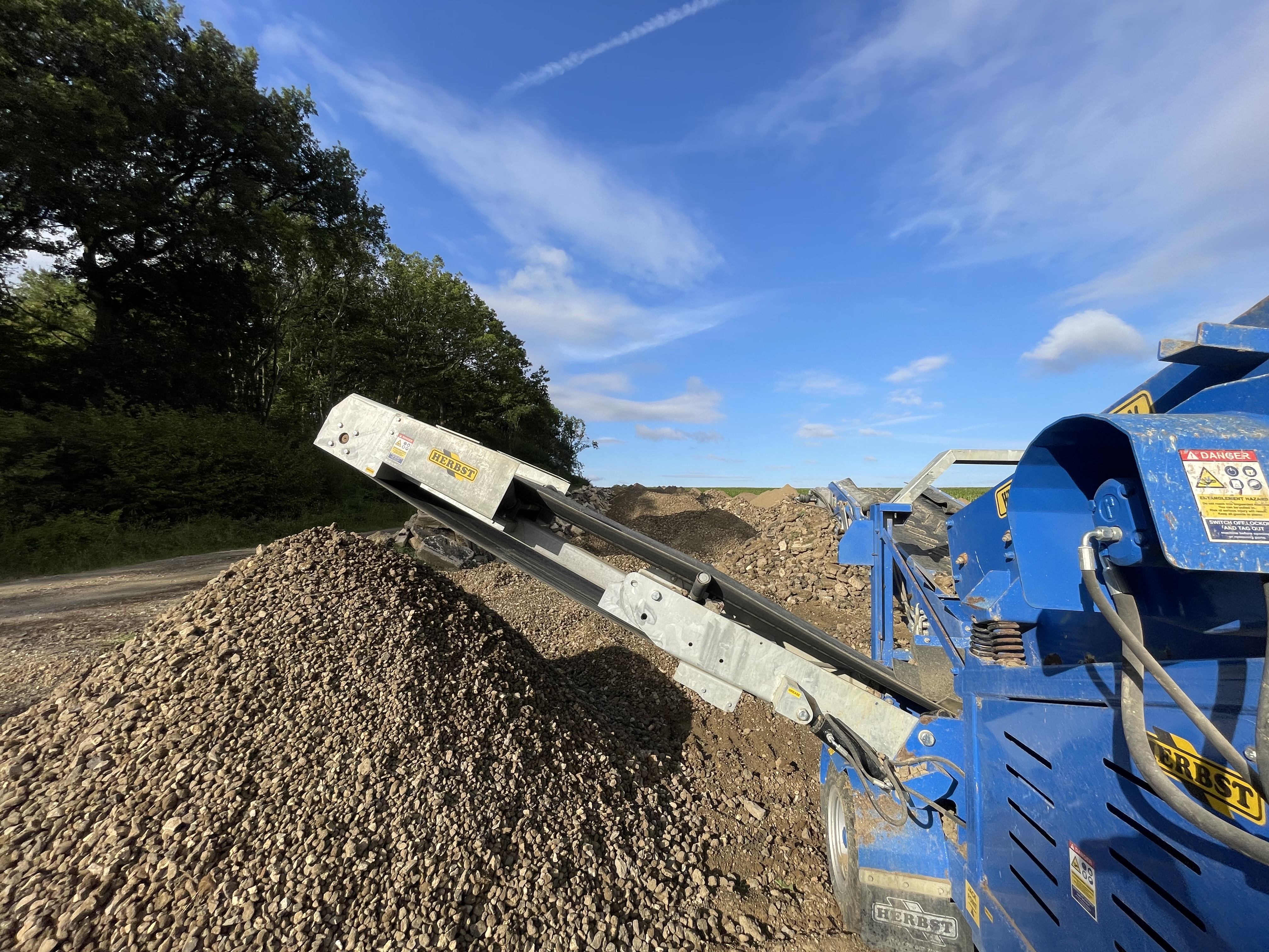 I found it deeply satisfying watching a landowner at a current site processing ‘waste’ from a temporary road back into useful materials. The 3 way sieve produced piles of course aggregate, medium aggregate and soil. Top job- and typical resourcefulness of the farming community!