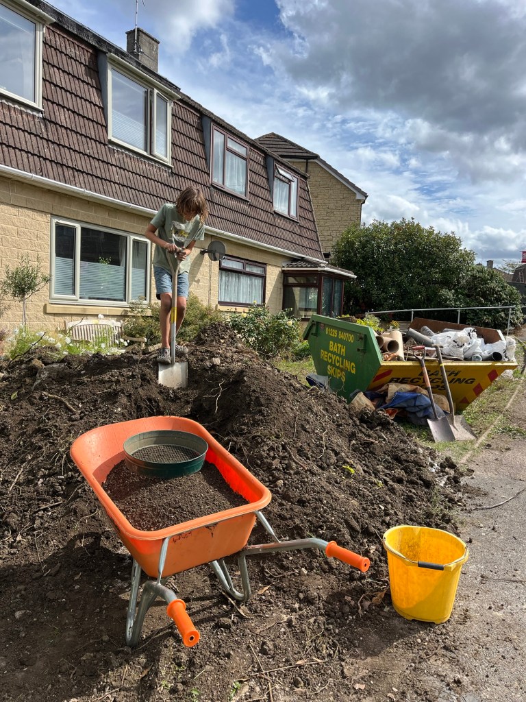 That is why we are spending the morning processing our neighbour’s patio dig out for use in our own biodiversity boosting project!